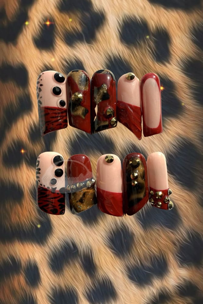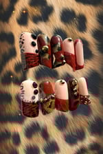 Unapologetically bold and impossible to ignore, this statement set blends fierce cheetah print with rich red tones, luxe gold accents, and sculpted lipstick-shaped nails for a design that commands attention. Designed for the birthday girl who doesn’t do subtle, this set is all about confidence, energy, and stepping fully into your moment.