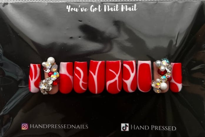 Use sizing card photo attached here to help figure out your nail size. If this set is not in your size but you would like to have it, you can place a custom order requesting this set. Put the name of this set in the notes section when once you’ve added to the cart and are ready to complete your order.
